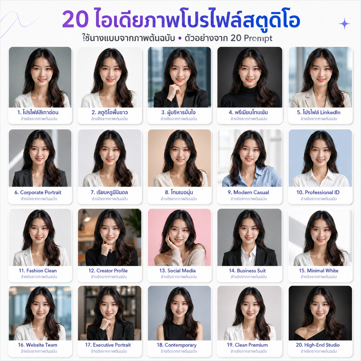 ด้านล่างคือ 20 Prompt แบบละเอียด พร้อมคัดลอกไปใช้กับ AI image generator ได้ทันที