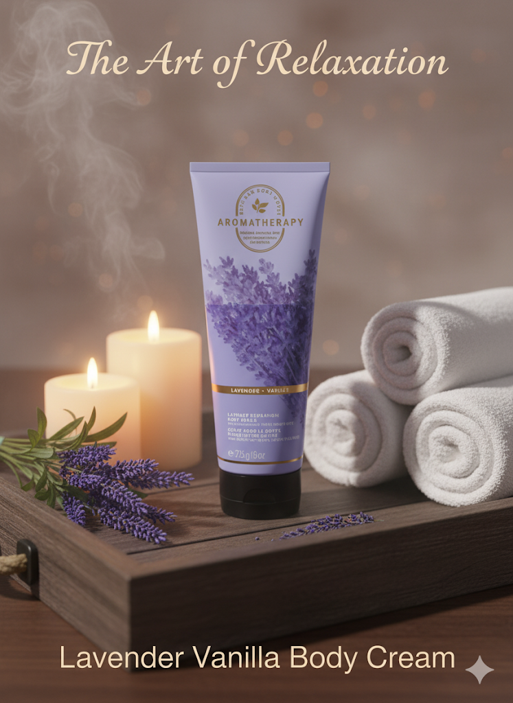 content: [“The Art of Relaxation”, “Lavender Vanilla Body Cream”]