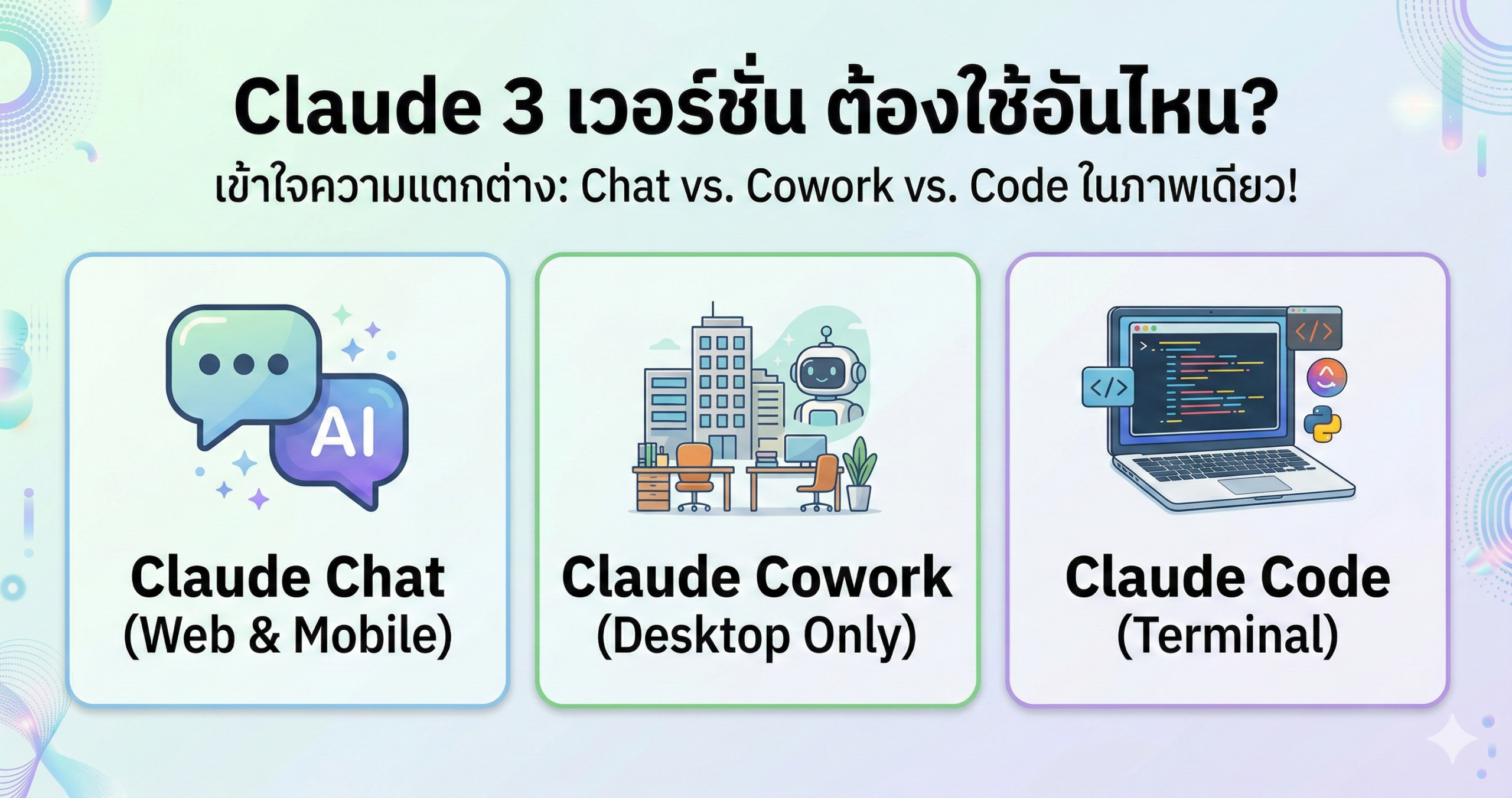 เมื่อ Anthropic เปิดตัวเครื่องมือของ Claude หลายตัว หลาย ๆ คนสับสนว่าต้องใช้อันไหน หรือมีความแตกต่างกันอย่างไร บทความนี้จะอธิบายให้ชัดเจนตามแบบที่ใช้งานจริง เพื่อให้คุณเลือกเครื่องมือที่เหมาะกับสิ่งที่คุณอยากทำ