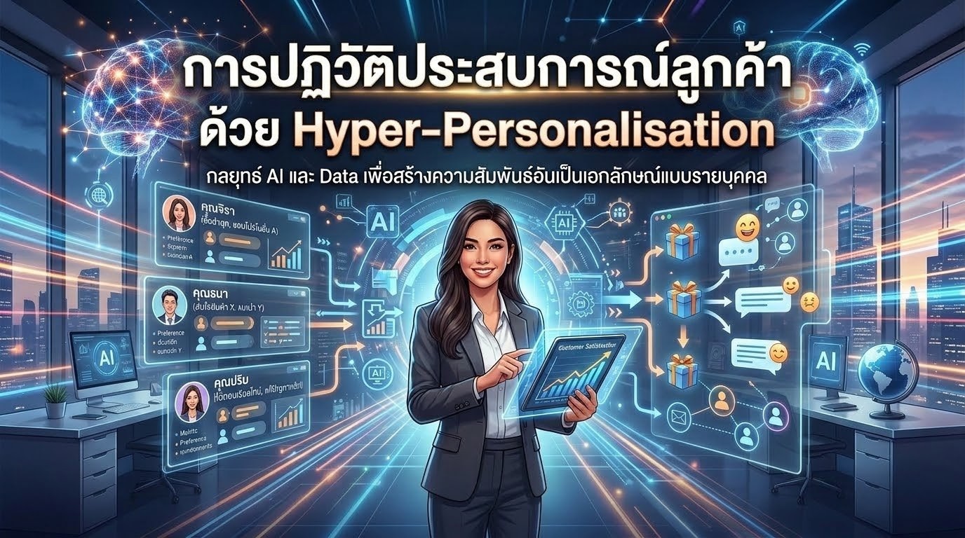 ในยุคที่ลูกค้าคาดหวังการบริการที่ “เข้าใจตัวตน” มากกว่าแค่การเรียกชื่อ Hyper-Personalisation กลายเป็นกลยุทธ์สำคัญที่ใช้ AI วิเคราะห์พฤติกรรม ความชอบ และบริบทแบบเรียลไทม์ เพื่อสร้างประสบการณ์ที่ไม่เหมือนใครให้กับลูกค้าแต่ละคน ทำให้ธุรกิจเพิ่มอัตราการแปลงลูกค้าได้ถึง 300% และสร้างความภักดีระยะยาว