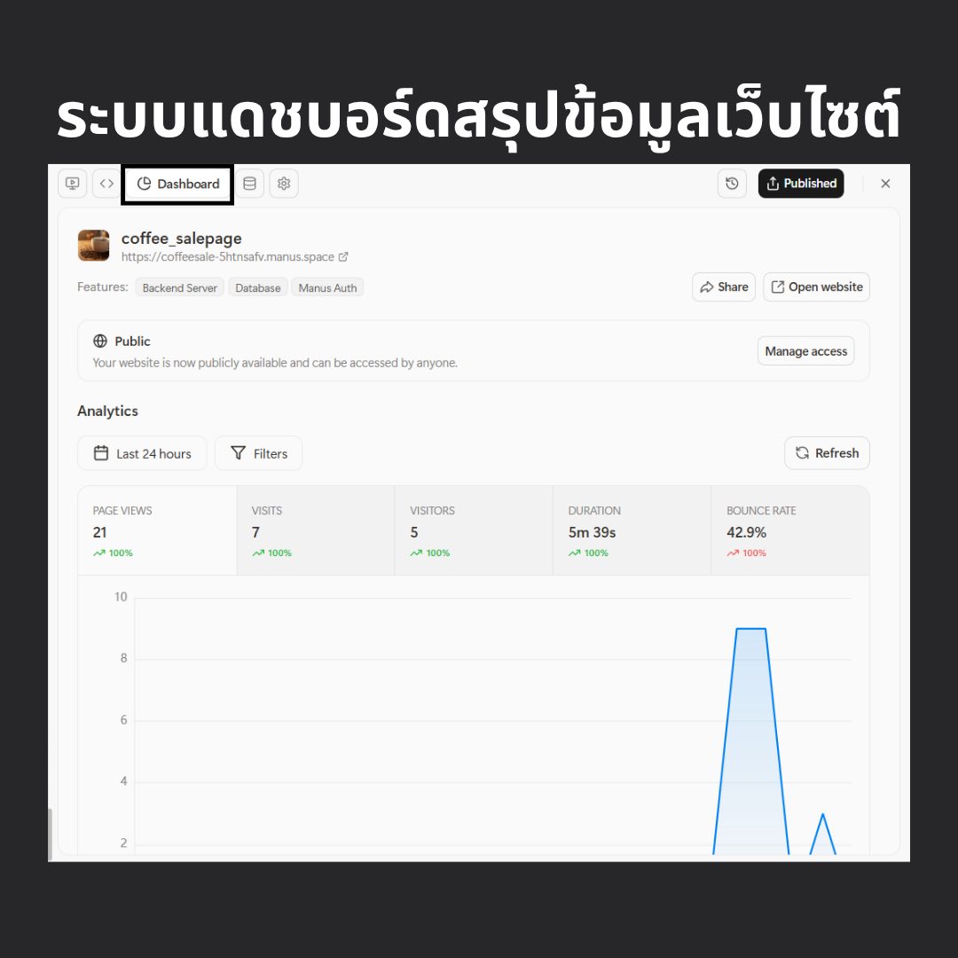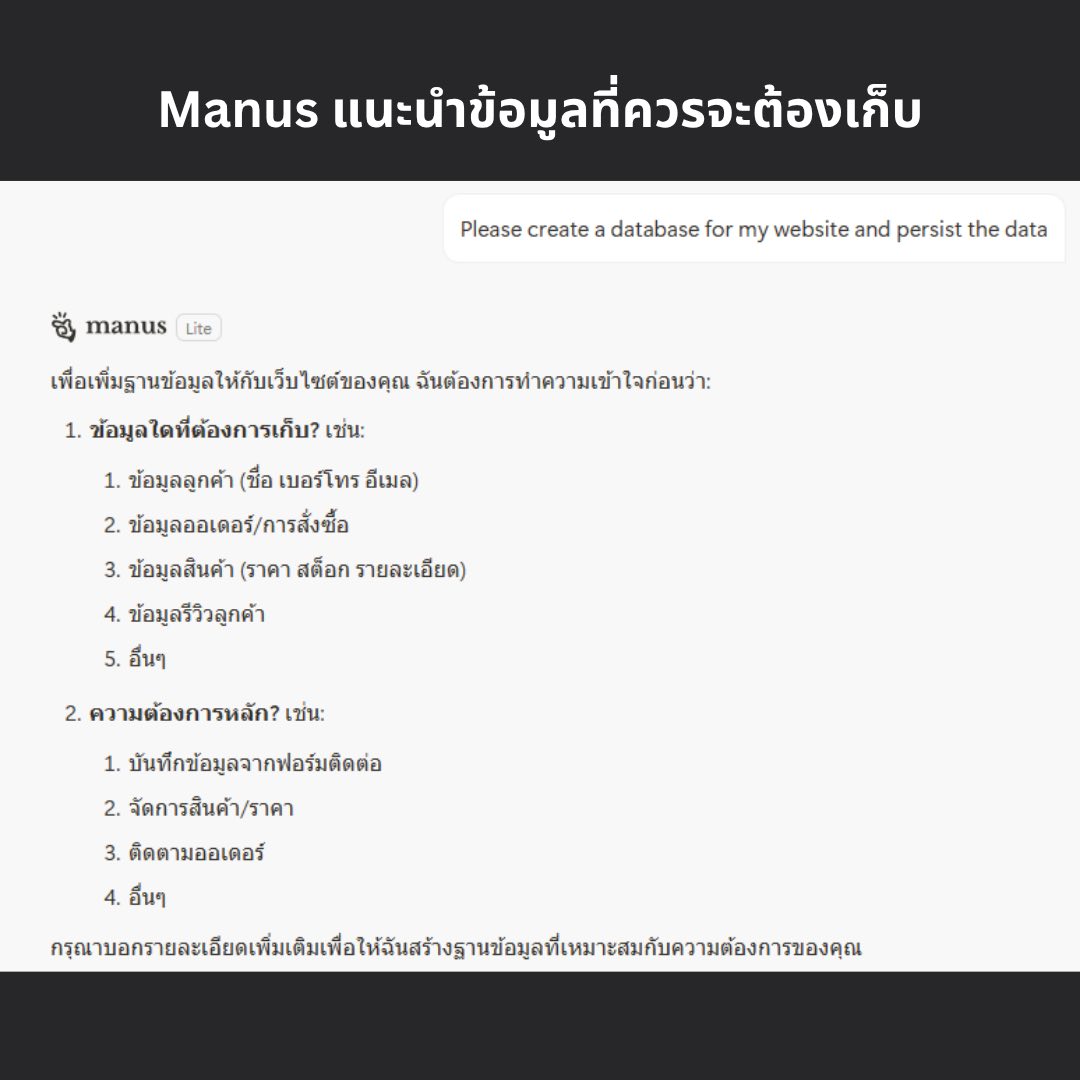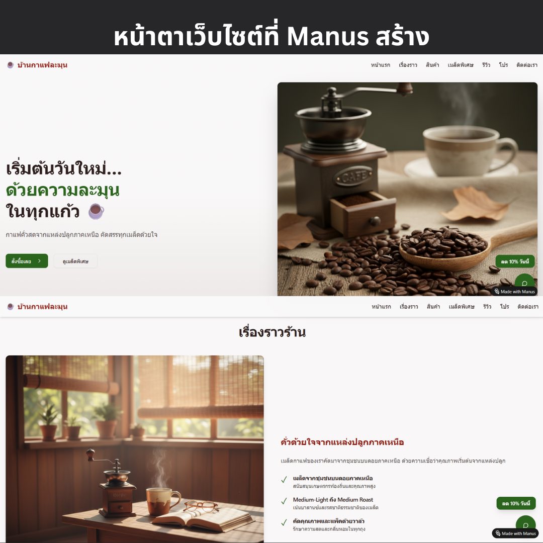 ตอนนี้แค่พิมพ์ Prompt ว่าอยากได้เว็บแบบไหน Manus จะสร้างให้ครบทุกส่วน