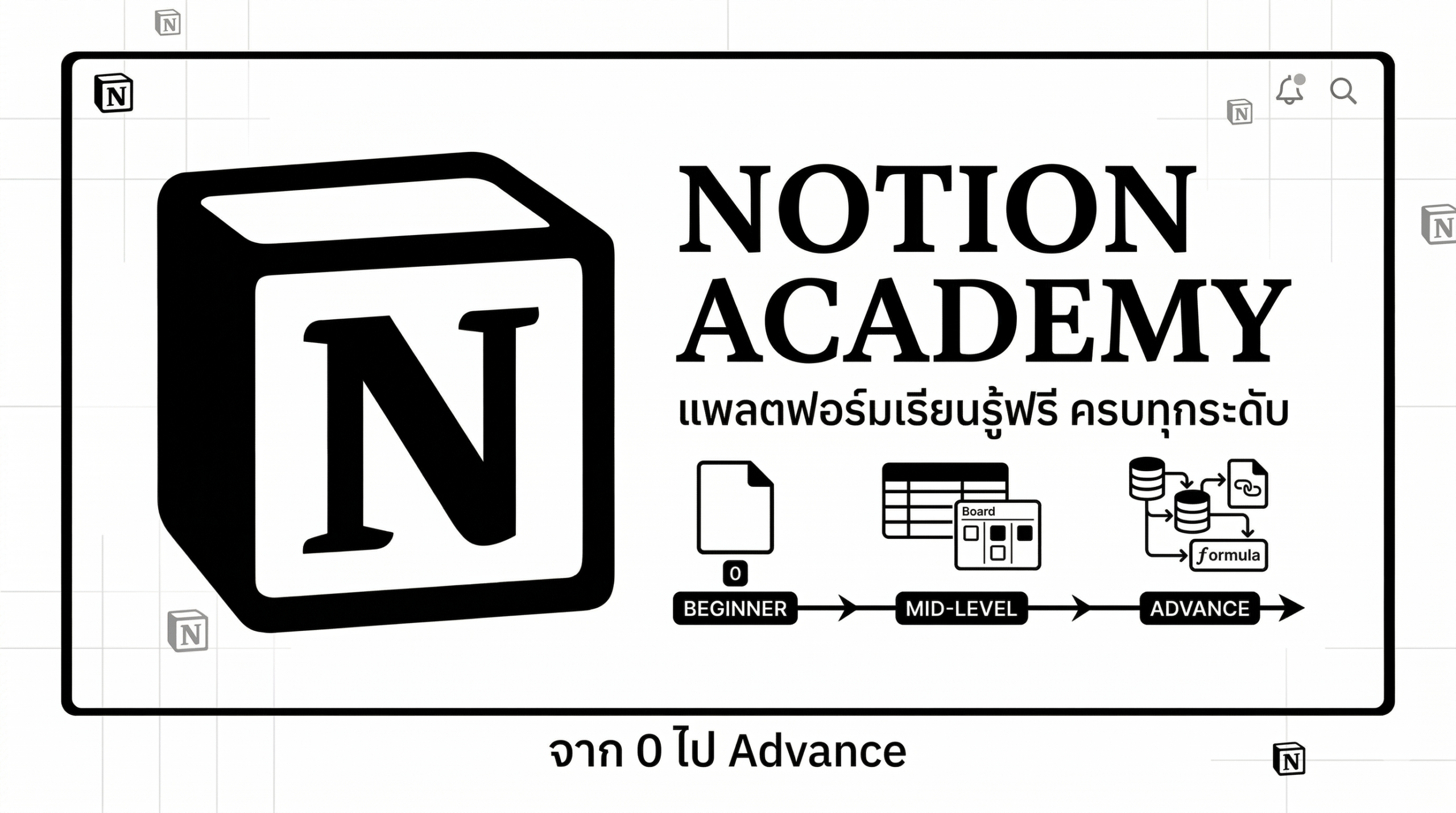 Notion Academy คือแพลตฟอร์มเรียนออนไลน์จาก Notion ที่รวบรวมคอร์สสอนการใช้งาน Notion อย่างเป็นระบบ ตั้งแต่ระดับเริ่มต้นไปจนถึงระดับมืออาชีพ เนื้อหาครอบคลุมทั้งการใช้งานส่วนตัว การทำงานเป็นทีม และการจัดการระบบในองค์กร